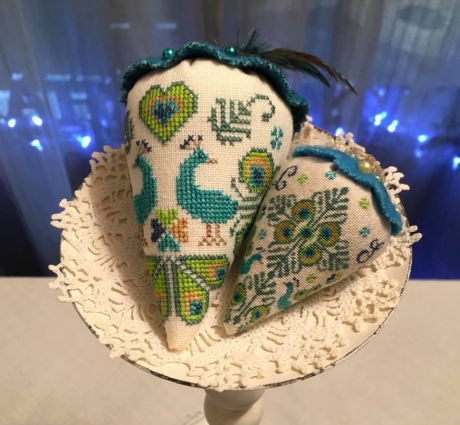 Peacock Party Berry in linen is on the left in this image. It was worked on 36 c Magnolia.